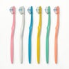 柄の材質:PET、毛の材質:ナイロン、毛の硬さ:やわらかめ、耐熱温度:80℃、使用方法:歯ブラシをペングリップ(鉛筆を持つように握って)で持ち、力をいれずに軽くブラッシングしてください。毛先が広がってきたら新しい歯ブラシと交換してください。使用期間は3週間が目安です。