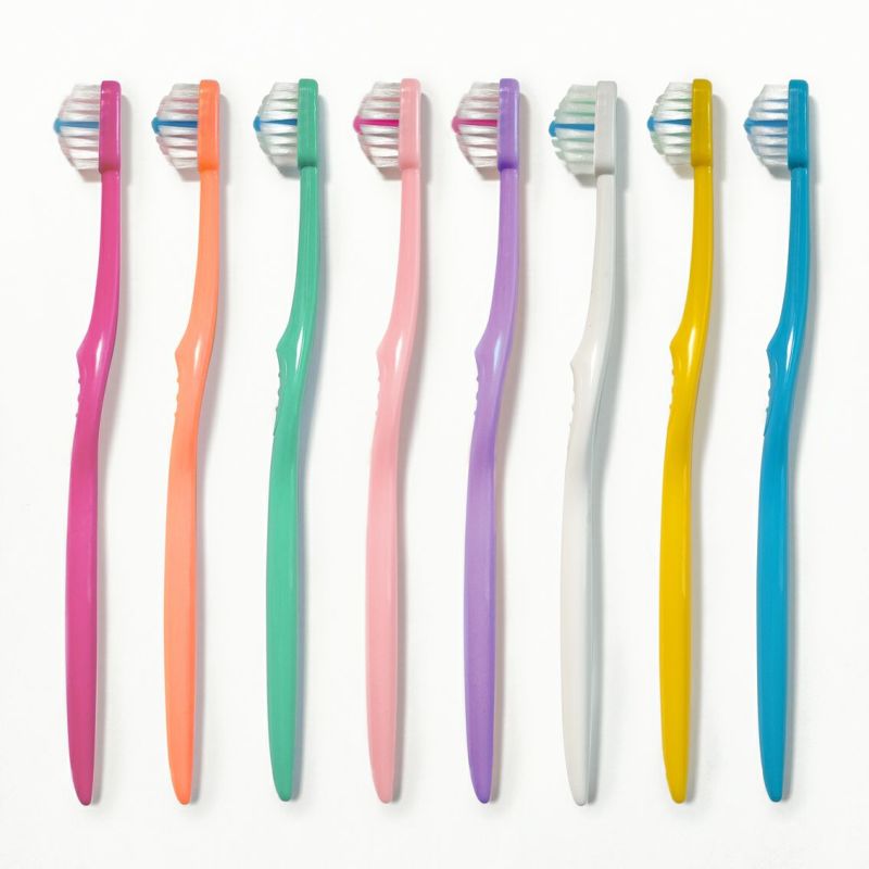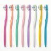 柄の材質:PET、毛の材質:ナイロン、毛の硬さ:やわらかめ、耐熱温度:80℃、使用方法:歯ブラシをペングリップ(鉛筆を持つように握って)で持ち、力をいれずに軽くブラッシングしてください。毛先が広がってきたら新しい歯ブラシと交換してください。使用期間は3週間が目安です。